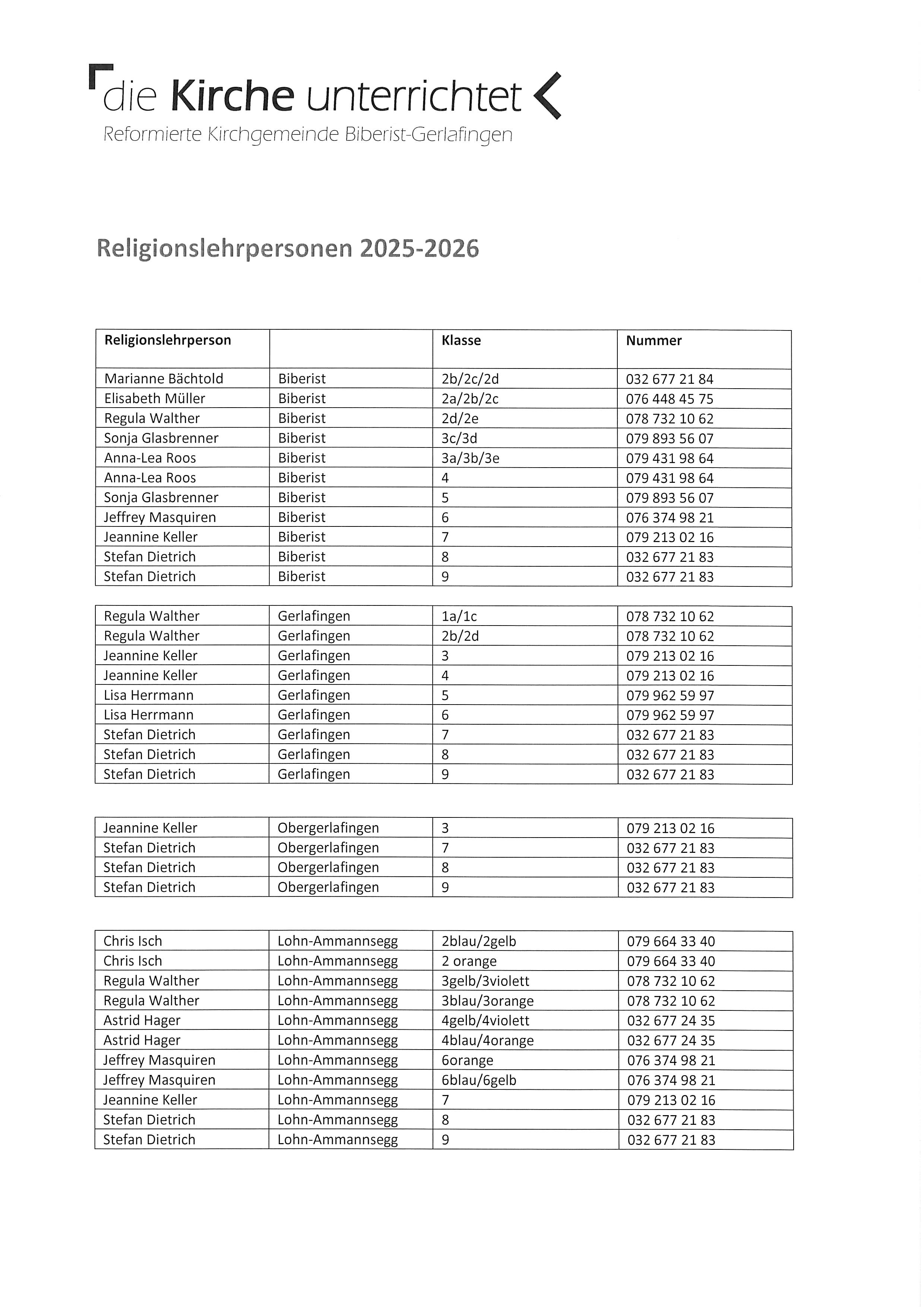 • Zuständige Relilehrer 2025/26